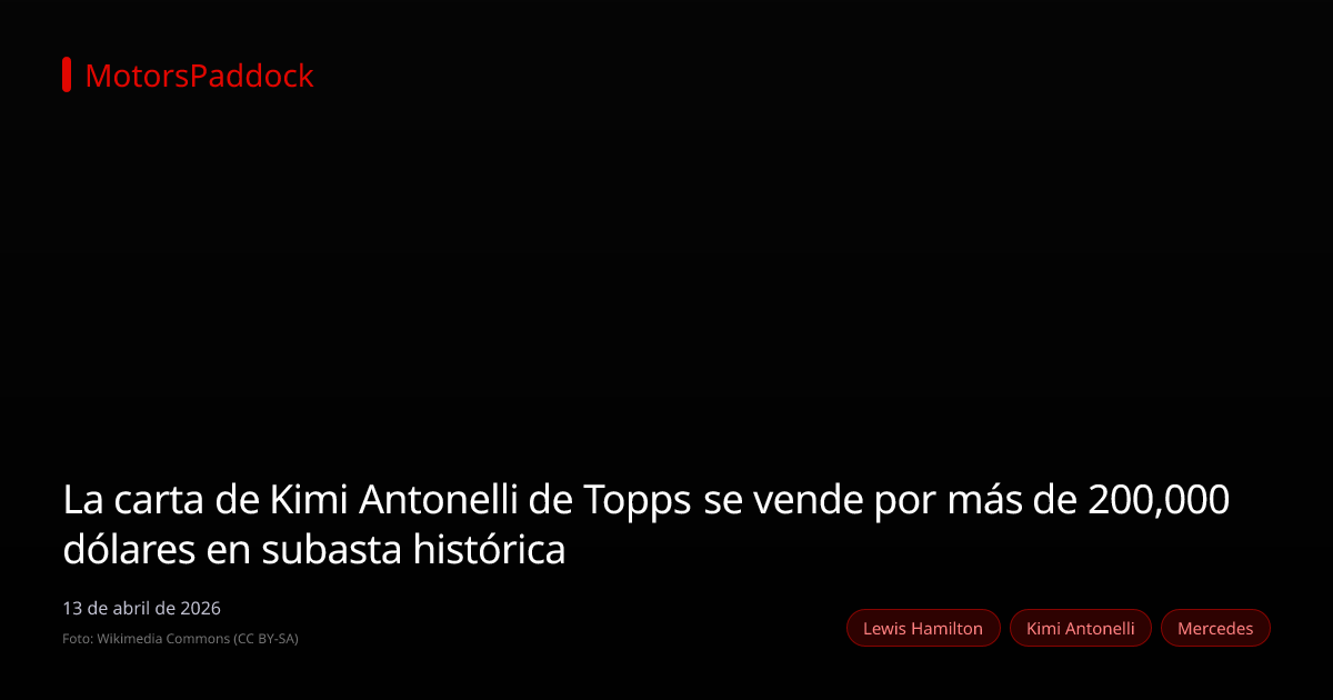 La carta de Topps exclusiva "2025 Topps Dynasty F1 Racing Glove Jumbo Patch Autograph Kimi Antonelli Signed Race-Used Patch Rookie Card" fue vendida en una subasta de Goldin Auctions por la asombrosa cifra de 201,910 dólares. Este monto la convierte en la carta más cara de un piloto de Mercedes y la séptima más valiosa de la historia en Fórmula 1.